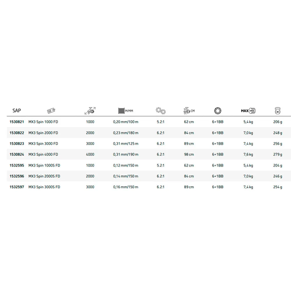 The MX3 reel is equipped with a light weight graphite body and rotor design, has 6+1 bearings(!) and that results in a very smooth rotation. Furthermore, the reel has an extra rigid bail, ergonomic handle knob and foldable handle (easy for transport / storage). If you feel the MX3, you will be convinced: the MX3 is one of the smoothest and most solid feeling reels of it´s price class.