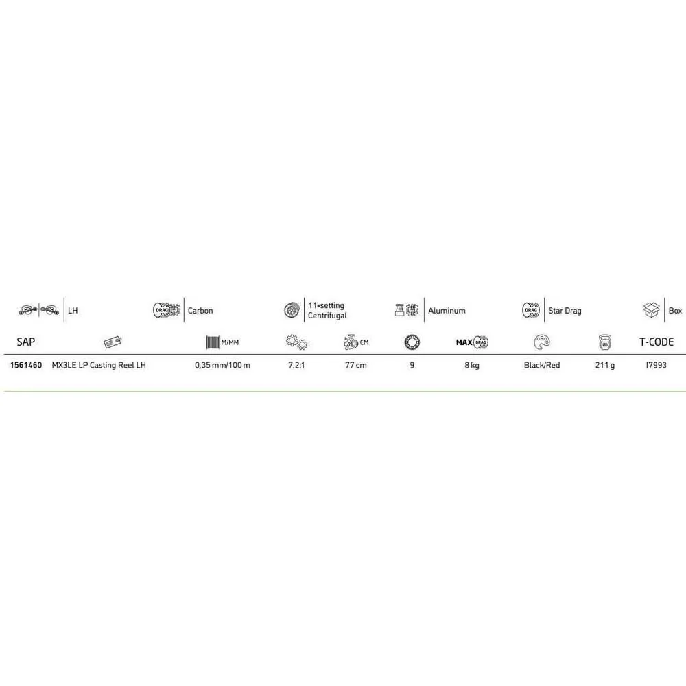 The Mx3le Lp Low Profile Reel Is A Reel With Strong Specifications: 9 Bearings, Light Weight One-Piece Graphite Frame And Eva/Rubber Grip Handle Knobs. The 11-Setting Centrifugal Braking System Is Very Accurate And Helps To Determine The Ideal Brake Settings For Different Lures. This System Is Easy Accessible With The External Dial Button. The Mx3le Lp Is The Ideal Choice For The Baitcasting Angler Who Is Looking For Decent Quality For An Affordable Price.